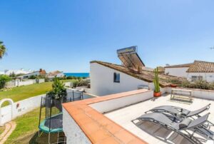 Located only 50 metres from the beach, this beautiful semi-detached townhouse offers direct access to the sea and breathtaking views over the Mediterranean. Set within the peaceful and picturesque seaside community of Bahía Dorada, just west of Estepona’s town centre, this home is part of a charming whitewashed urbanisation known for its natural beauty, well-maintained surroundings, and authentic Andalusian character.