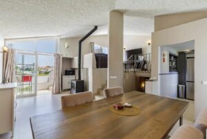 The property includes three well-sized bedrooms and two bathrooms, making it suitable for families, couples, or guests. The independent kitchen is fully fitted and thoughtfully designed, ideal for both everyday use and entertaining. High-quality finishes run throughout the home, including porcelain floors, Climalit double-glazed windows, built-in wardrobes, and white lacquered interior doors.