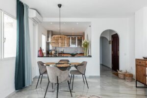 Located in Calahonda, Mijas Costa, this beautifully renovated apartment was originally designed as a two-bedroom property and has been thoughtfully reconfigured into a spacious one-bedroom residence with an additional versatile room. This secondary space is ideal as a home office, walk-in wardrobe, storage room, or a compact children’s bedroom (with space for bunk beds).