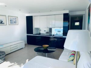 Open-plan kitchen seamlessly connected to the lounge and dining area, leading directly to the balcony
