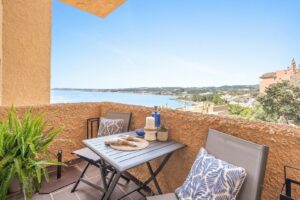 The apartment is located on the middle floor of a well-maintained building within a gated community. It benefits from a bright open-plan layout with a fully equipped kitchen, dining and living area, all opening onto a private terrace with direct views over Cristo Bay and the sea. The bedroom also enjoys the same spectacular outlook, making this home ideal for waking up to inspiring Mediterranean panoramas.