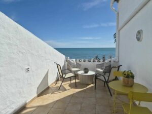 The apartment boasts a beautiful and spacious terrace with direct sea views and panoramic outlooks towards Estepona. This wonderful outdoor space is perfect for dining, relaxing, and enjoying the peaceful surroundings.