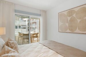 The apartment has been fully refurbished with a contemporary design, the interior features an open-plan layout that maximizes natural light and harmony. The bright living room flows into a sleek, fully equipped kitchen with integrated appliances and modern finishes. The spacious bedroom offers built-in wardrobes and a serene ambiance, while the elegant bathroom showcases high-quality fittings and a clean, modern style.