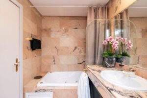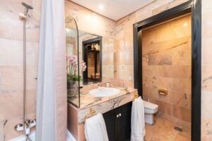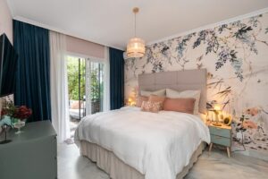 Amazing fully refurbished garden apartment with southwest orientation on the beachside in Elviria in East Marbella. The apartment offers one ample bedroom with walk-in closet and bathroom, a guest toilet, a beautiful fully equipped kitchen and bright living room with access to terrace and private garden. The apartment is sold fully furnished and equipped and including and underground parking space and storage room. Gated complex in second beach line offering tropical gardens, 24hrs. security on site, pool and heated pool. Within walking distance to all local amenities. The centre of Marbella is just a 10 minute drive away.
