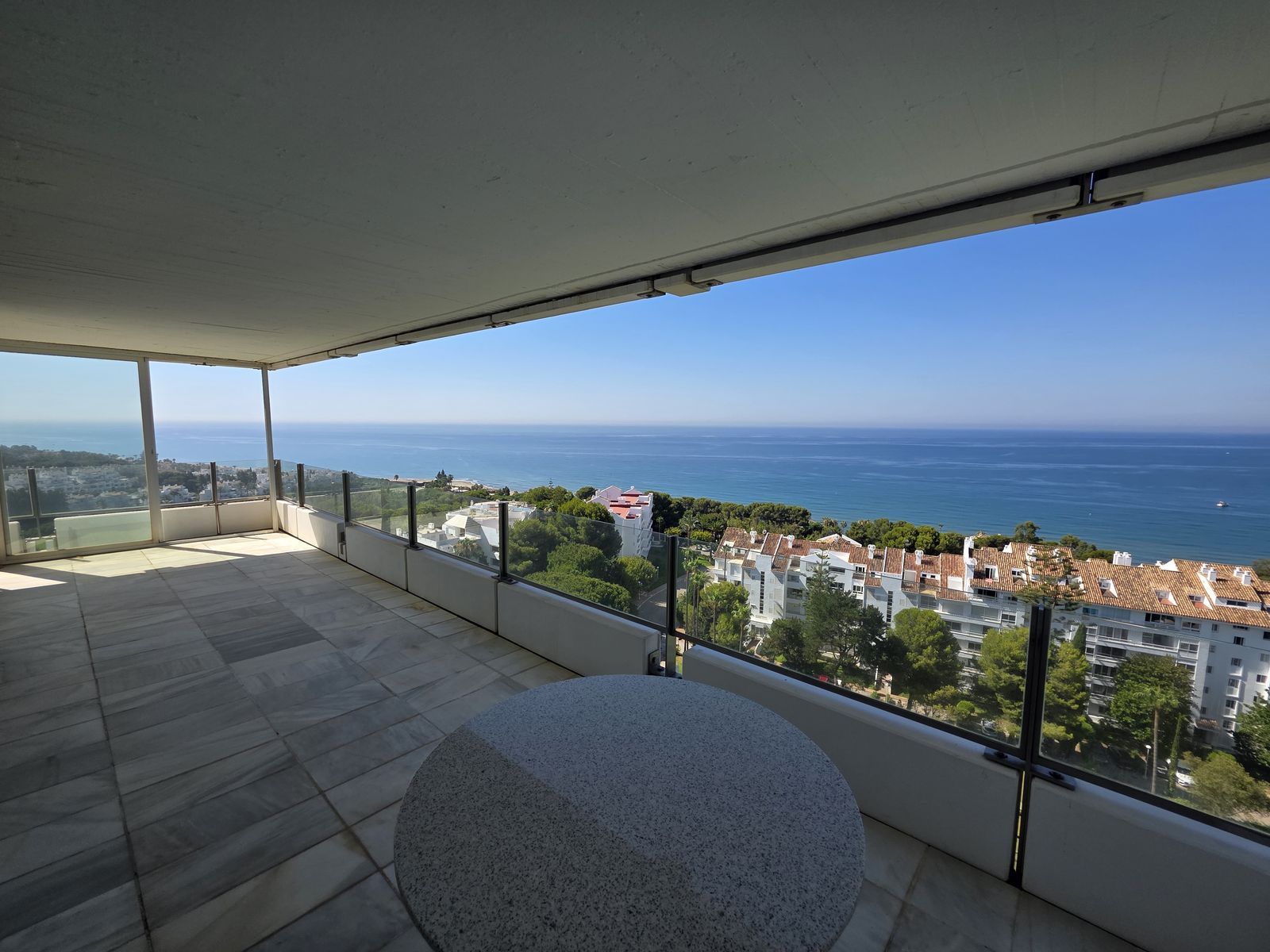 Unique opportunity to purchase two apartments which were united into one big apartment in the famous Torre Real in Marbella. Offering a total of 120m2 living and 98m2 terraces all around. Due to the location on one of the last floors of the building, you enjoy stunning views to the sea, views along the coast and to the mountains. The property comes with two private parking in the underground garage and a storage room. The gated community is also very special with large community grounds, gardens, pool areas and two tennis courts. The building offers a lift and a concierge service. About 10minutes from the historic part of Marbella town and only 45 minutes from the Málaga airport and city.