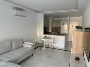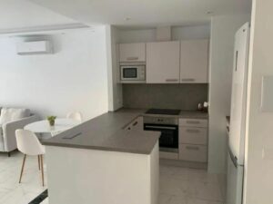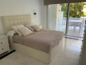 Renovated apartment for sale. One bedroom, brand new bathroom, American kitchen with plenty of storage space, two built-in wardrobes, hot/cold air conditioning and electronic radiators. Smooth paint. Indirect lights adjustable in intensity and perimeter recess to create atmospheres. Very bright. Camouflaged designer sockets. On the terrace, a room for a washing machine and storage has been built. It has a washer-dryer. Electric awning. The apartment has 58 useful square meters and the terrace 30 useful square meters. Brand new hot water heater. Water is not paid for, it is included in the community fee. Possibility of making a second bedroom since the square footage of the house is large. Quiet urbanization designed by the architect Fernando Higueras, with a tropical garden, with two swimming pools, fountains, an artificial river with fish, frogs, ducks.. . IT HAS DIRECT PEDESTRIAN ACCESS TO THE BEACH, without having to cross the road, two showers for when you return from the beach to remove the sand, with direct access to the pool from the beach.