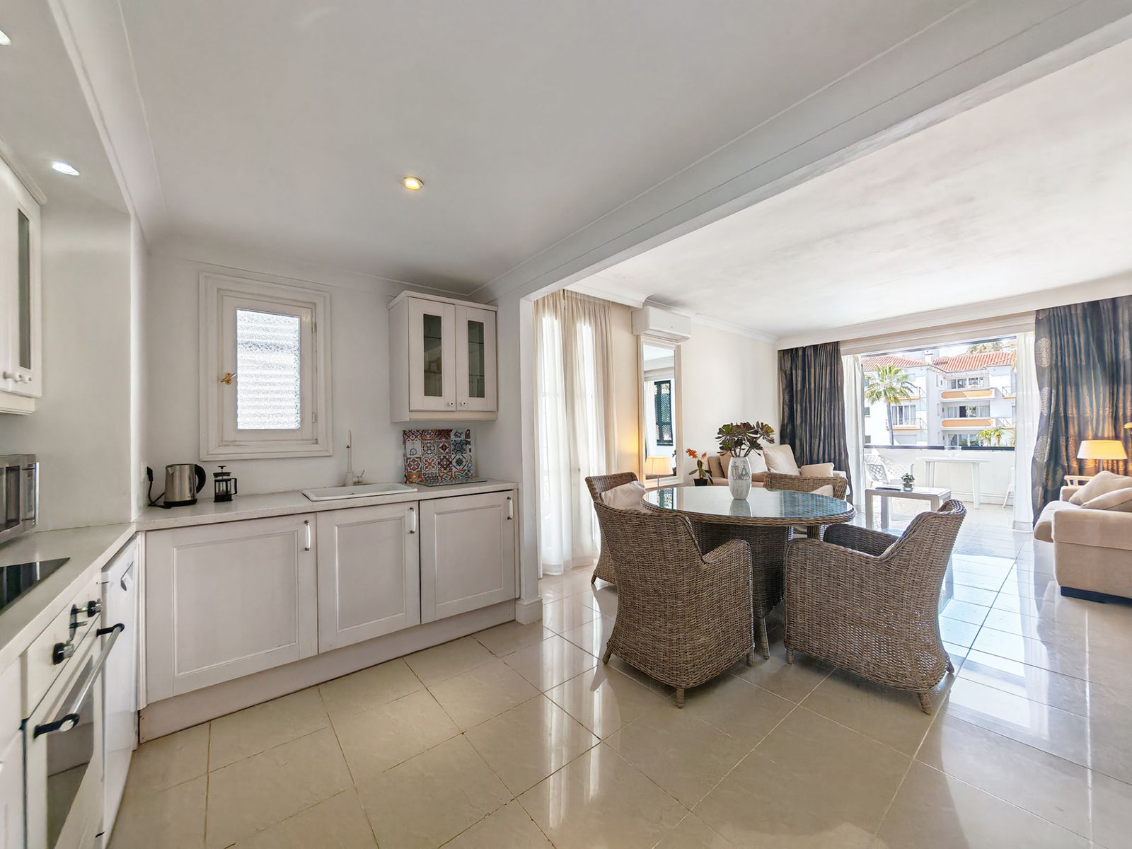 Apartment for sale in Jardines de las Golondrinas, Marbella with 1 bedroom, 2 bathrooms, 1 on suite bathroom and with orientation north/west, with communal swimming pool, private garage (1 parking spaces) and communal garden. Regarding property dimensions, it has 73 m² built, 67 m² interior and 13 m² terrace. Has the following facilities air conditioning, fully fitted kitchen, storage room, fitted wardrobes, gated community, lift, pool view, beach side, close to sea / beach, open plan kitchen, balcony, good condition, close to shops, close to town, close to port and close to schools.