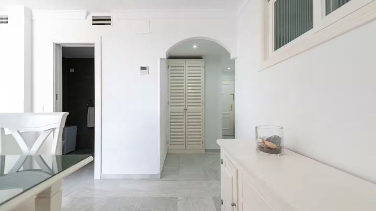 Beautiful, fully furnished and equipped studio apartment located in an iconic Marbella building, just steps from the beach in the town center and its promenade. South-facing, it has a total built area of 52 m². The layout includes an entrance hall, separate bedroom, bathroom, fully furnished and equipped kitchen, and living/dining room. Enjoy stunning views of the sea, garden, and communal pool. Ideal as an investment, holiday home, or for those who prefer to be close to all amenities and the charm of Marbella. High-quality construction, air conditioning, concierge service, well-maintained common areas, and a beautiful garden with a communal pool. A select community of residents where tourist rental licenses are not granted.