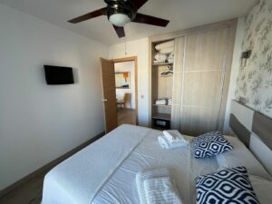 Layout and finishesThe apartment has a bright living room with direct access to the terrace, where you can enjoy panoramic views of the Mediterranean.