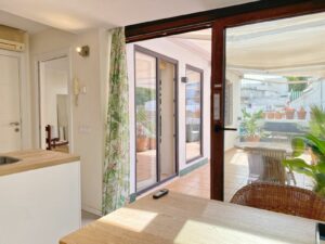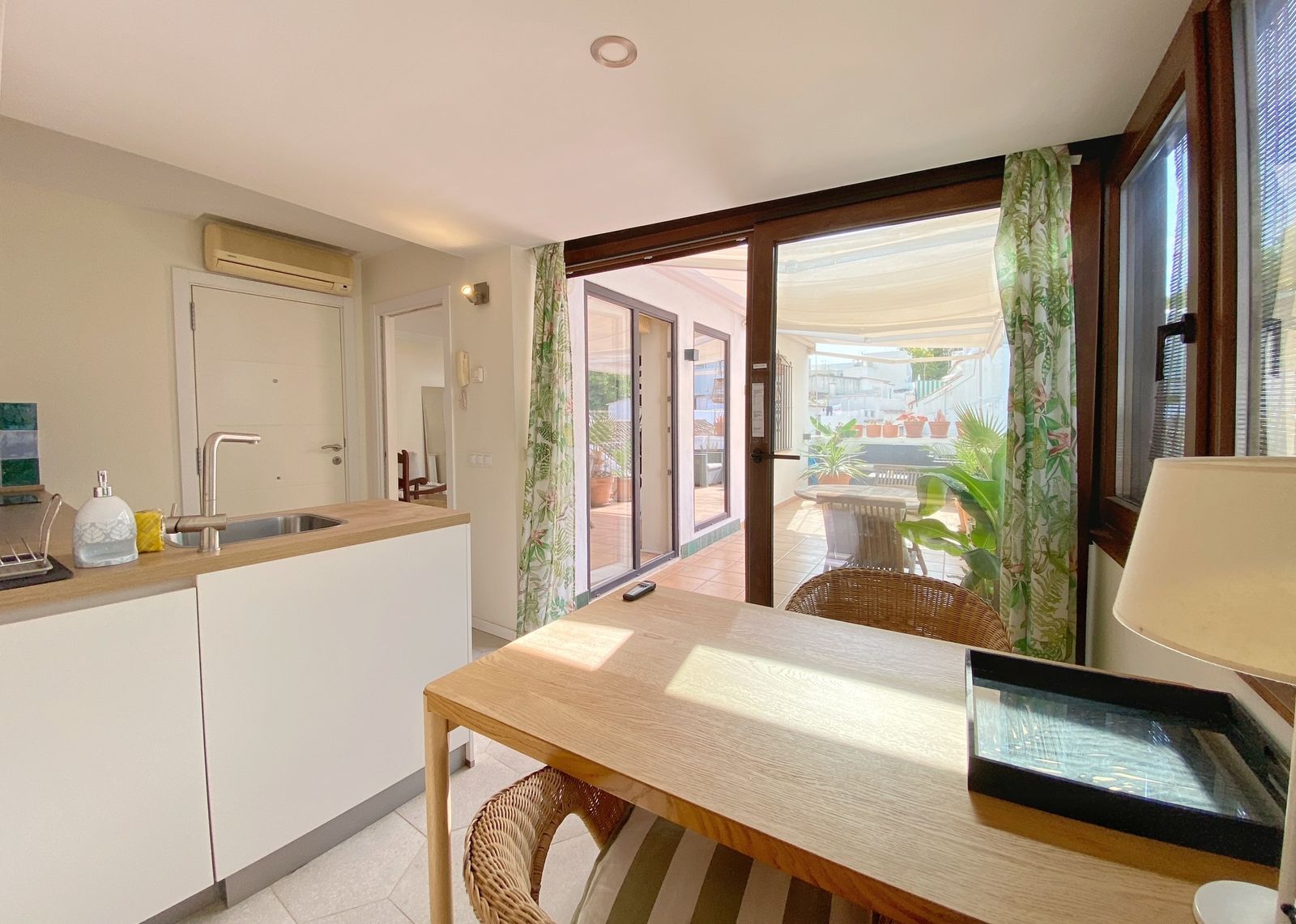 Located on a quiet pedestrian street in Marbella's Old Town, very peaceful and quiet. The apartment has a separate bedroom, a bathroom with a shower and an exterior window, a cozy living room, and a fully equipped kitchen with a dining area, both with direct access to a fantastic outdoor terrace, where there are different areas to relax or sunbathe on the sun lounger, or to sit and eat outside.
