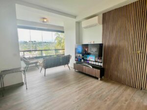 Modern 50 m² apartment fully renovated and furnished, located on the 3rd floor with elevator and reception. Features a bright living area with air conditioning, lovely views, and a laundry room that can be used as a second bedroom. Enjoy great community amenities including swimming pool, well maintained gardens and concierge.
