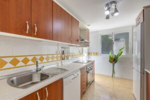 Spacious one bedroom appartment (79m²) with a full bathroom with window, kitchen with access to a laundry room and living/dining room with access to a large 54m² terrace that surrounds the entire property.