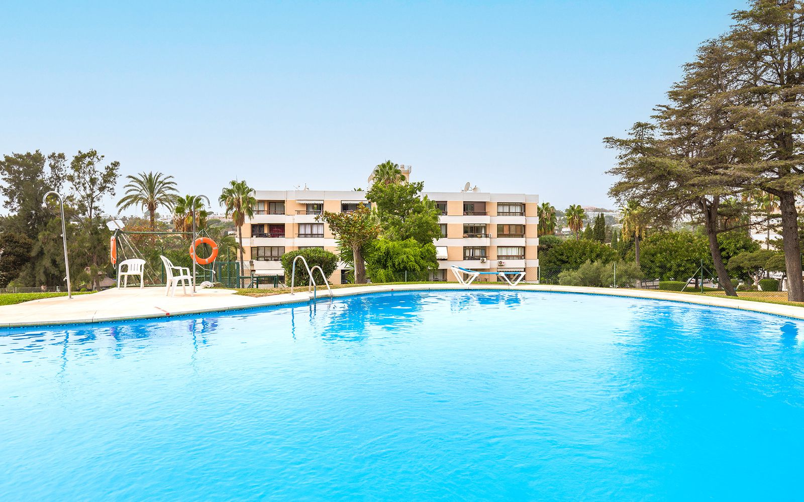 First floor east-facing apartment surrounded by golf and amenities, Torres de Aloha, Nueva Andalucía. Comprising living/dining room, small kitchen and east-facing terrace, and a bedroom with a separate bathroom. Lovely gated complex with reception, security guard, swimming pool, and walking distance to restaurants, cafés, supermarket, tennis club, and golf courses. The monthly community fees include the water and electricity supplies. A fantastic holiday home and ideal for investors looking for high rental potential.