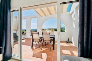 A spacious South West-facing terrace provides breathtaking views of the sea, surrounding mountains, and Gibraltar on clear days—perfect for enjoying sunsets and evening breezes.