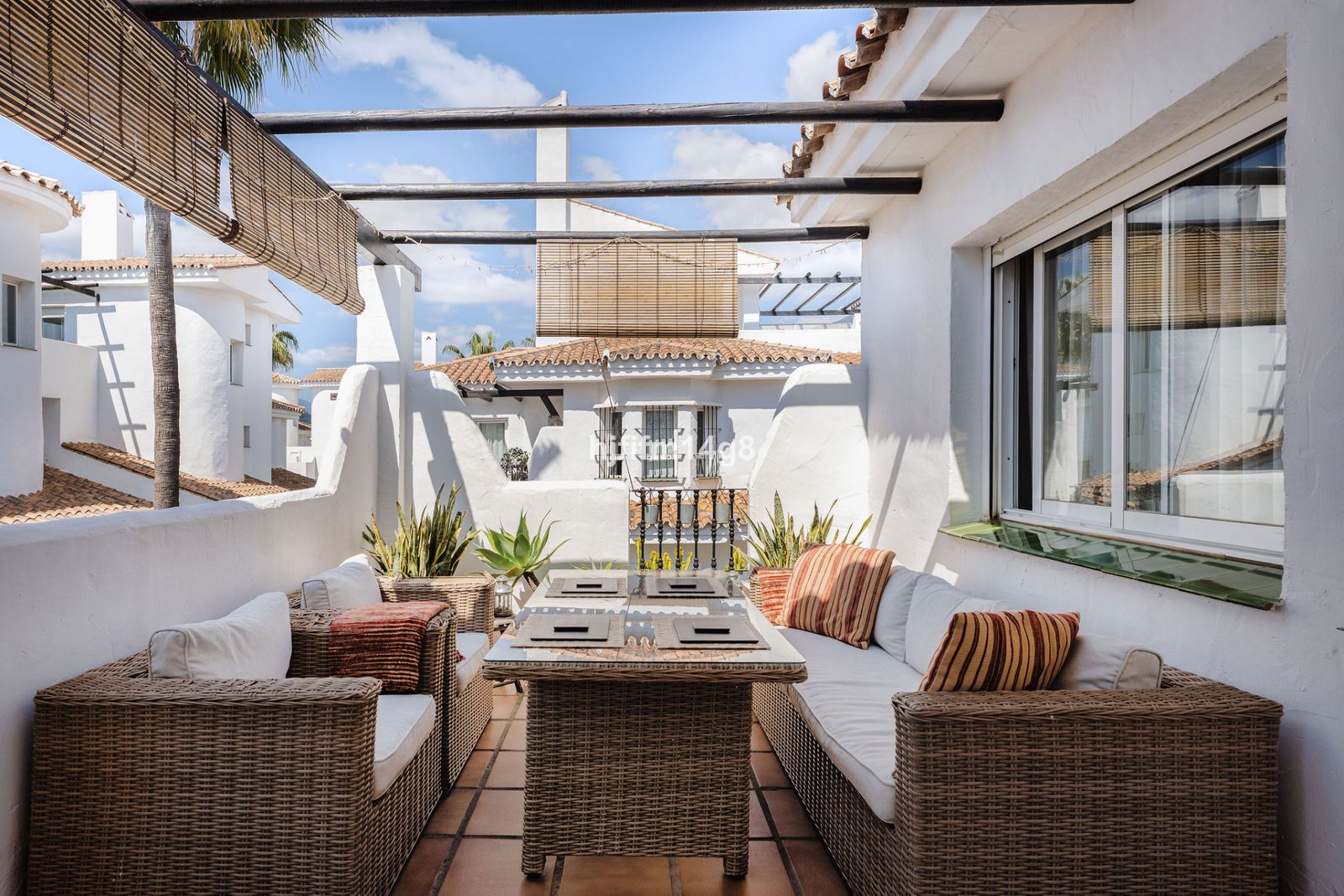 Set within a charming Andalusian-style development, this penthouse benefits from a welcoming community with meticulously landscaped gardens, eight inviting swimming pools, and a tranquil atmosphere. Residents enjoy the convenience of an on-site supermarket, while yoga studios, boutique shops, and leisure facilities are all within easy walking distance.