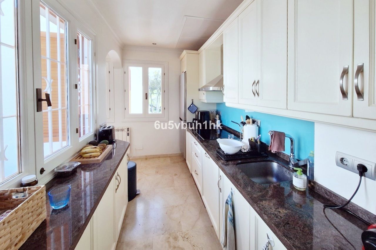 From the moment you enter, the apartment feels bright and serene. Positioned to embrace the gentle morning light, the penthouse enjoys an east-facing orientation, allowing the first rays of the Andalusian sun to flood the interiors with a soft, uplifting glow. The open-plan living area extends onto a generous terrace, creating a seamless transition between indoors and out—perfect for slow sunrise breakfasts, peaceful afternoons, or simply admiring the lush golf and garden surroundings.