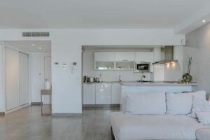 The apartment offers two spacious bedrooms and two beautifully designed bathrooms, each showcasing a refined and contemporary style. The open-plan layout between the kitchen and living room creates a bright and social atmosphere – ideal for everyday living and entertaining guests. From the living room, you access a lovely terrace with an outdoor seating area, the perfect spot to enjoy the amazing views of La Concha and the lush surroundings of the community.