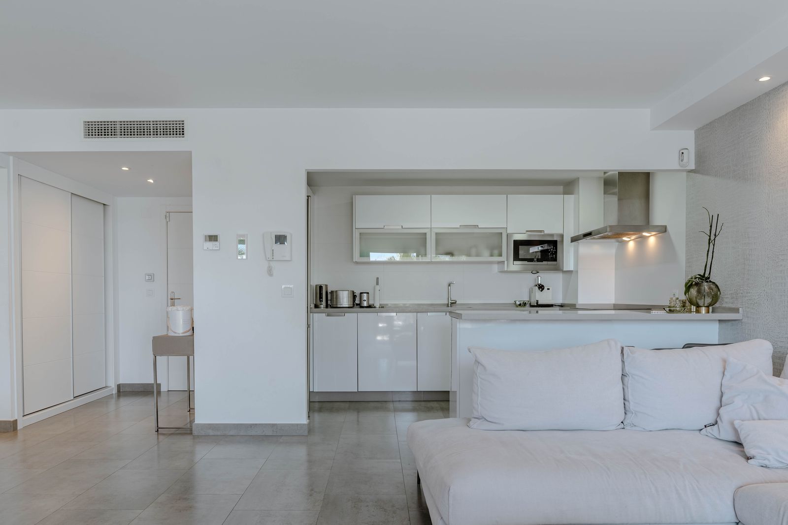 The interior is defined by light tones and elegant finishes, creating a sense of harmony and comfort. The property also includes convenient features such as a lift directly from the garage to the apartment, as well as two private parking spaces and a storage room, both included in the price.