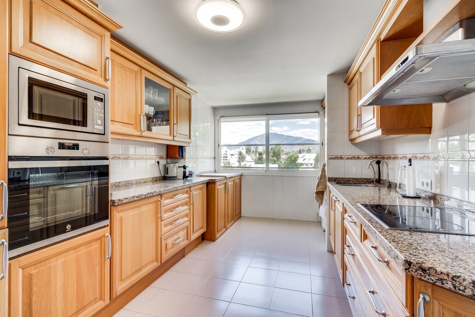 This development presents an L-shape block facing the pool and well maintained beautiful communal gardens. The apartment boasts expansive living spaces, featuring two bedrooms and two bathrooms with one en-suite bathroom. This dwelling also has a spacious terrace offering open views to the communal garden and pools, and partial views to the sea. The property includes an underground parking place.