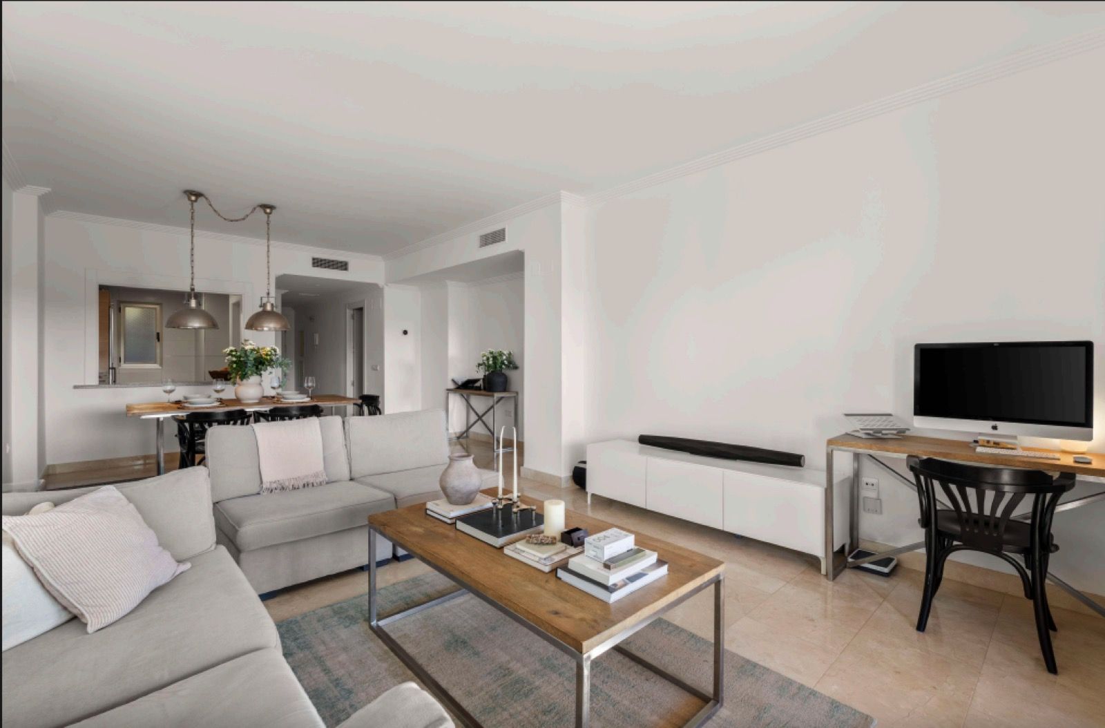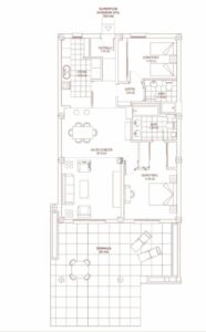 Spanning 125 m² of warm, inviting space, the apartment features a cosy layout with modern amenities like underfloor heating throughout and air conditioning. It includes two spacious bedrooms with fitted wardrobes, two full bathrooms, a fully equipped kitchen with laundry, and a generous living-dining room opening to a terrace – perfect for relaxing in the peaceful surroundings with total privacy. Sold fully furnished, it's ready to move in or rent out immediately, capitalising on high year-round demand, especially in summer.
