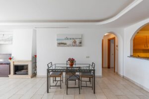 This fully furnished apartment features a bright living area with a modern fireplace, creating a warm and welcoming atmosphere throughout the year. The contemporary kitchen is fully fitted with high-quality appliances, making the home ready to move into.