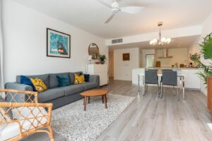 Inside, the apartment has been thoughtfully designed to maximize natural light and space. Its open-plan layout seamlessly connects the fully equipped kitchen with the dining and living areas, creating a functional and welcoming environment, perfect for daily life as well as entertaining guests. High-quality finishes and carefully chosen details add to the modern and comfortable feel of the home.