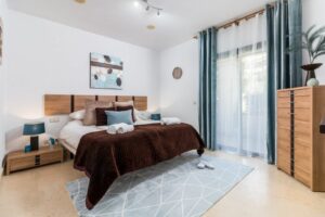 The apartment is on the ground floor and has hot and cold air conditioning throughout. It is a luxurious apartment with marble floors and contemporary furnishings. The development is surrounded by its own golf course and is fully gated with 24 hour security. The grounds have been thoughtfully landscaped and there are a number of pools, including the beautiful indoor pool, gym and spa area.