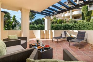 Capanes del Golf is a luxury development located between the coast and the village of Benahavis and only 15 minutes to the famous Puerto Banus and Marbella. The living room has direct access to the large north east facing terrace; the kitchen is fully fitted with modern appliances.
