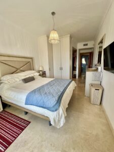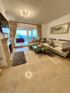 This apartment offers spectacular, direct sea views. It consists of two bedrooms, two bathrooms, one en suite.