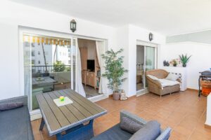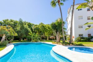Set within a secure gated community, residents enjoy access to three swimming pools, a padel tennis court, and beautifully maintained subtropical gardens. The apartment also includes private underground parking, with additional guest parking available inside the grounds.