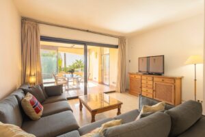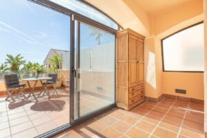 The living room, spacious and full of natural light, opens onto a south-facing terrace where you can enjoy the sun all day long. The terrace combines an open area perfect for sunbathing with a covered dining space, creating a cozy and versatile atmosphere throughout the year.