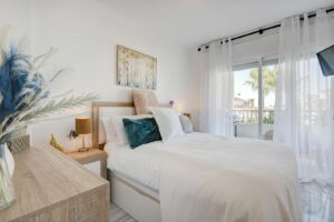 A beautiful apartment in one of the best blocks in the development with views over the landscaped pool and garden areas and sunshine all day.