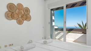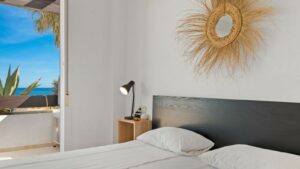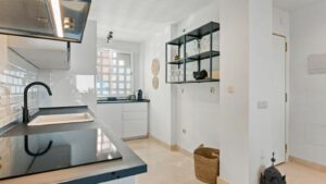 The bright and airy living room opens onto a lovely terrace where you can enjoy sunny days, relaxing dinners, and breathtaking views of the Mediterranean. The kitchen has been fully renovated with clean lines and light materials, creating a calm and elegant atmosphere.
