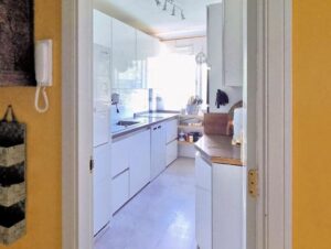 This south-facing property on a corner boasts panoramic views of the surrounding area and the Mediterranean Sea. It is located in a prestigious residential complex, just a few minutes' drive from Calanova Golf Club and the centre of Calahonda. The property has two generously proportioned bedrooms, both with fitted wardrobes, and two bathrooms finished to a high standard. The property's living/dining room is both spacious and well-lit, and opens onto a large south-facing covered terrace with a barbecue area. The kitchen and laundry area are located in separate spaces and are fully fitted.