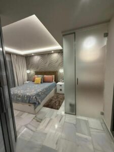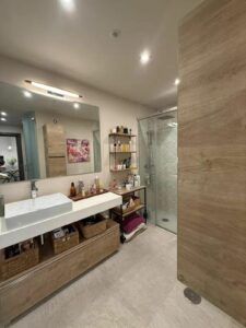 An ideal place for those seeking peace, comfort, and a direct connection to the Mediterranean environment. The apartment offers two spacious bedrooms and two bathrooms, one of which is en suite within the master bedroom, where an elegant glass enclosure provides spaciousness and brightness.