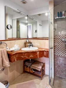 With superb views of the sea and nature, it faces west, ideal for enjoying the last hours of light from its large covered terrace as well as the beautiful Mediterranean sunsets. It consists of a living-dining room with a fireplace, an elegant open-plan kitchen, a separate laundry room, a guest toilet and two bedrooms, both ensuite.