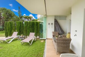 From the living room, step directly onto your private terrace, through the private garden, and straight to the pool. Just 50 metres further is the beach. The apartment faces the sea, providing open views and an unbeatable atmosphere.