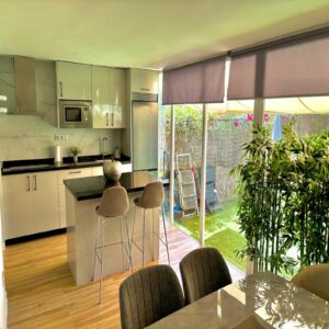 The property has a total of 135 m² (70 m² interior + 65 m² private garden), completely renovated less than 2 years ago, with an open-plan kitchen and living-dining room with direct access to the garden.