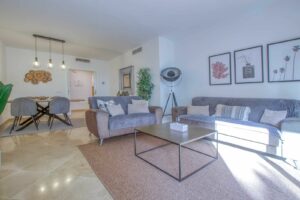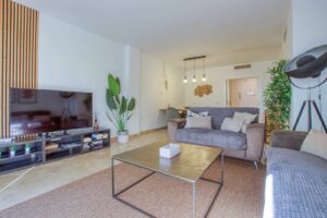 This two-bedroom apartment is located in the Princess Park complex in Calahonda, on the beautiful Mijas Costa. It offers comfortable living space with a bright living room, a fully equipped kitchen, and a pleasant terrace to enjoy the Mediterranean climate. Both bedrooms are spacious, and the residence has communal swimming pools and gardens, providing a secure and elegant setting.