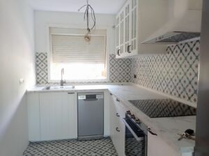 Walking distance to the beach and shopping center. Beach bars, restaurants, and supermarkets. Large terrace, approximately 30 square meters, with unobstructed views. Walking distance to the beach and shopping center. Cafe, restaurants, and beach bars. Also walking distance to your favorite gym, approximately 15 minutes. Corner apartment with a bathroom with a window and a kitchen with a window. Communal pool and garden. Gated community parking. Newly renovated open-plan kitchen. Appliances with invoices. Some furniture is included, also new, but not yet installed. Living room and master bedroom with fireplace. Built-in barbecue on the terrace.