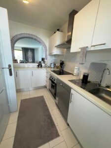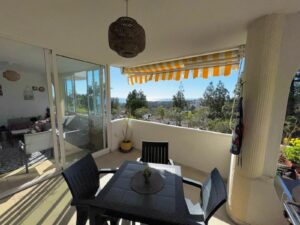 This fantastic two-bedroom, southwest-facing first-floor apartment in Calahonda offers beautiful sea views and an abundance of natural light throughout the day. The property features a bright and spacious living area complete with a charming fireplace, creating a warm and inviting atmosphere; a fully fitted kitchen with a separate laundry area; two bedrooms, one with direct access to the terrace; a full bathroom; and a convenient guest toilet for added comfort. One of the highlights of this home is the generous terrace space. The covered terrace is perfect for outdoor dining and relaxing while enjoying the stunning sea views, and part of the terrace has been enclosed with glass curtains, allowing you to make the most of the space all year round.