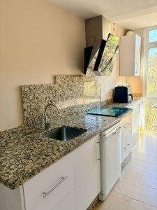 The living room is bright and welcoming, with direct access to a generous south-facing terrace, perfect for enjoying the sun all year round.