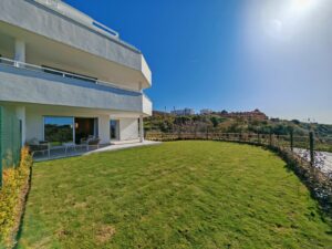Ground Floor Apartment for sale in Cancelada, Estepona with 2 bedrooms, 2 bathrooms and 1 on suite bathroom, with communal swimming pool, private garage (1 parking spaces) and private garden. Regarding property dimensions, it has 90.6 m² built, 129.4 m² plot, 75.1 m² interior and 25.25 m² terrace. Has the following facilities amenities near, air conditioning, fully furnished, fully fitted kitchen, gym, double glazing, video entrance, brand new, private terrace, water tank, country view, indoor pool, internet – wi-fi, fitted wardrobes, gated community, garden view, panoramic view, close to children playground, close to sea / beach, close to golf, open plan kitchen, spa, excellent condition, close to schools and close to restaurants.