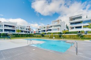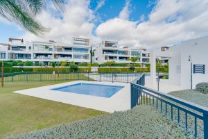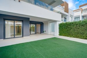 Well-presented east-facing two-bedroom ground floor apartment located in the popular gated community of Miradores del Sol, ideally situated in Cancelada and within close proximity to the beach, shops, restaurants, and all essential amenities. The property offers a comfortable and functional layout, featuring a bright living and dining area with access to the terrace and private garden; a master suite; guest bedroom; guest bathroom; fully fitted kitchen with a separate laundry area; private rear patio; and direct access from the private garden to the communal areas. Residents of Miradores del Sol benefit from excellent communal facilities, including a large swimming pool, two jacuzzis, and a children’s playground, all set within beautifully maintained gardens. Other features include hot and cold air conditioning, underfloor heating throughout, a private parking space, and a storeroom.