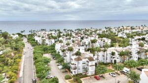 The apartment is located in the prestigious Costalita urbanization — one of the most sought-after beachfront complexes in Estepona. It features beautifully maintained tropical gardens, a swimming pool, direct access to the beach and promenade, and all amenities nearby: restaurants, shops, golf courses, and a school in Cancelada. Only 10 minutes to Puerto Banús and about 12 minutes to Estepona town center.