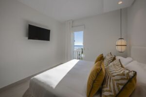 This beautifully renovated two-bedroom, two-bathroom apartment has a wonderful sea view and offers a stylish and comfortable living experience in one of Estepona’s most desirable coastal areas. Every detail of the 100 m² interior has been completely updated with a fresh, contemporary design that combines high-quality materials and modern finishes. Bright and welcoming, the apartment is move-in ready and perfectly suited for relaxed seaside living. A spacious 11 m² terrace extends the living space outdoors, providing a private spot to enjoy the tranquil surroundings.