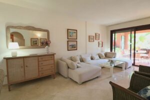 Discover this exclusive ground floor apartment in Marbella East, a real gem on the second line of the best beach on the Costa del Sol and in a luxury residential complex with 24-hour security, large gardens, and a large communal pool.