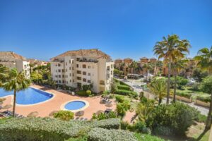 Excellent opportunity! Luxury apartment in one of the most sought after residential complexes in Elviria Hacienda Playa. The property is located walking distance to the beach (50 meters) and just a few steps from all services such as restaurants, banks, churches, schools, etc. This south facing apartment with a living area of 106 m2 + 62 m2 terrace consists of 2 bedrooms, 2 bathrooms, fully furnished and equipped kitchen, a large living room and a very sunny terrace. Air conditioning, hot / cold, Well maintained complex with communal gardens and pool. All this surrounded by beautiful tropical gardens. The apartment is in excellent condition and is very well maintained. An ideal option to enjoy life in Marbella right by the sea. The apartment includes an underground parking space and a basement room. 2 bedrooms, 2 bathrooms, living area 106 m2 + 62 m2 terrace, south facing. Built in 2002. This is the perfect home for a permanent holiday stay. Its position and features make it very attractive on the rental market.