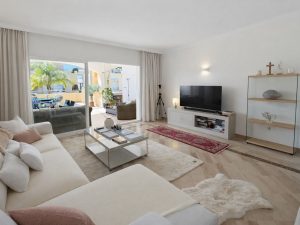 Beautiful apartment located in Hacienda Elviria, one of the most sought-after residential areas of Marbella, surrounded by nature and tranquility and just a few minutes from the best beaches of the Costa del Sol. The property offers 118.50 m² built, plus an independent laundry room of 4.34 m² and a spacious 61.41 m² terrace, perfect for enjoying Marbella’s sunny climate all year round. The apartment is distributed in an entrance hall, bright living-dining room with direct access to the terrace, independent kitchen, laundry room, two bedrooms, two bathrooms and a guest toilet, providing a comfortable and functional layout. Located on the ground floor of a well-maintained residential complex with communal garden areas, it offers privacy and a peaceful environment. The property is situated in Elviria (Las Chapas), a consolidated area with international schools, golf courses, supermarkets, restaurants and all services nearby, and only a short drive from the beach and Marbella town centre, making it ideal as a permanent residence, holiday home or investment opportunity on the Costa del Sol.