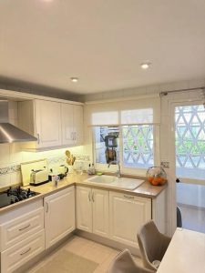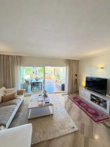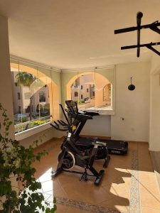 Elviria – Spacious 2-bedroom, 3-bathroom apartment with a floor area of 118.5 m², a large 61 m² terrace, and a separate laundry area. The property was completely renovated last year and is being sold fully furnished, including appliances.